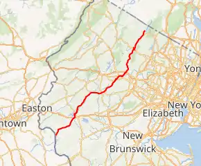 | Hunterdon | Frenchtown | 0.00 | 0.00 | Southern terminus | |