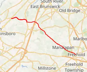 County Route 522 (CR 522) is a county highway in the U.S. state of New Jersey. The highway extends 21 miles (34 km) from Route 27 in South Brunswick Township to Main Street (CR 537) in Freehold Borough.