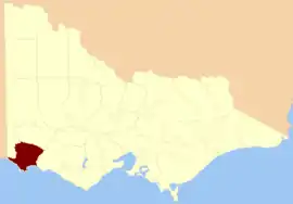 The County of Normanby in Victoria, is one of the 37 counties of Victoria which are part of the cadastral divisions of Australia, used for land titles. The county is in the Western District of Victoria bounded by the Glenelg River in the west and the Eumeralla River in the east, by a line through Casterton and Hamilton in the north, and by Bass Strait (Portland Bay) to the south. Larger towns include Hamilton, Portland and Heywood. The county was proclaimed in 1853, but it was known earlier since the 1849 proclamation of Follett County and Dundas County referred to its boundaries.[1]