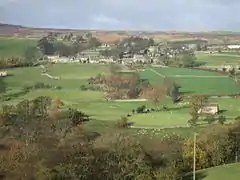 Coverdale is a dale in the far east of the Yorkshire Dales, North Yorkshire, England. It takes its name from the River Cover, a tributary of the River Ure. The dale runs south-west from the eastern end of Wensleydale to the dale head at a pass, known as Park Rash Pass,[1] between Great Whernside to the south and Buckden Pike to the north. It is accessible by a single track road, which runs the length of the dale and over the pass to Kettlewell in Wharfedale.[2][3] Speight suggests that the name derives from the Anglo-Saxon Cofa-Dal which means Cave-Dale (in part due to the many caverns in the dale) or it may derive from Kofur which means Arrow; an allusion to the swiftness of the water in the dale.[4]