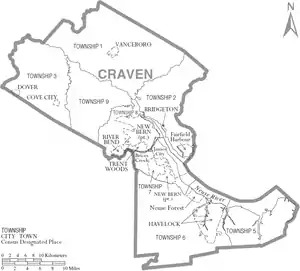 - "Craven County". NCpedia. State Library of North Carolina. January 1, 2006. Retrieved January 22, 2015.