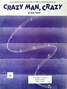 "Crazy Man, Crazy" was the title of an early rock and roll song written by, and first recorded by Bill Haley & His Comets in April 1953. It is notable as the first recognized rock and roll recording to appear on the national American musical charts, peaking at #12 on the Billboard Juke Box chart[1] for the week ending June 20, 1953, and #11 for two weeks on the Cash Box chart beginning for the week of June 13.
