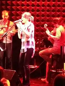Milioti's first acting roles were bit parts in national advertising campaign ads, notably one for the Ford Edge.[7] She also appeared in television programs such as 30 Rock and films such as Greetings from the Shore. Milioti is also known for her stage performances. In 2007, she appeared on Broadway as Alice Ashbrook in Helen Edmundson's award-winning adaptation of Jamila Gavin's novel Coram Boy.[8] She was the 2010 star of That Face,[9] receiving a Lucille Lortel Award nomination for Outstanding Lead Actress for her work in Stunning.[10] In 2012, she received a Tony Award nomination for Best Actress in a Musical for her work in Once, a play in which she had performed from 2011 to 2013.[11] Her Once performance, with fellow principal soloist Steve Kazee, earned the 2013 Grammy Award for Best Musical Theater Album. She also read aloud a short story for the 2011 This American Life episode "Adventure".[12] In 2012 she appeared on several songs of Glen Hansard's debut album Rhythm and Repose.