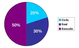 | The three most common sites of intestinal involvement in Crohn's disease | |