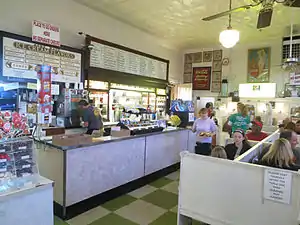 A St. Louis landmark, it is the oldest operating soda fountain in the metropolitan area, and one of the oldest in the country. The restaurant has an old-fashioned decor with Coca-Cola memorabilia from the 1930s, an antique cash register, and four-person booths.[1] It offers a simple menu with sandwiches and is known for its desserts, especially for its handmade malts or malted milkshakes. It is popular as a lunch destination with office workers in nearby downtown St. Louis.[2] The chocolate is made from decades-old molds, some imported from Holland and Germany.[3]