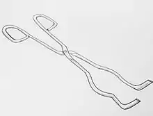 Crucible tongs are scissor-like tools, but instead of having two blades, these tools are replaced with two pincers or pieces of metals that concave together, which allow the users to grasp a hot crucible, flasks, evaporating dishes, or even small beakers.[1] They are made of durable metals, allowing them to endure a very hot temperature when touching with the hot objects.[2]