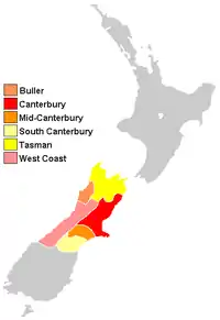 The Crusaders' franchise area consists of the regions controlled by the Buller, Canterbury, Mid-Canterbury, South Canterbury, Tasman and West Coast rugby unions.[6] Before 2006, when the NPC was reorganised, Canterbury was the only union playing division one (now Mitre 10 Cup) within the Crusaders' catchment. As a result, the majority of Crusaders players were also listed with Canterbury. Today, the Crusaders' catchment contains two Mitre 10 Cup sides – Canterbury and Tasman.