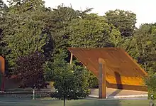 In 1996 an architectural competition was by held by London Borough of Bromley and Arts Council England, to design a new permanent stage in the park. Ian Ritchie Architects won with a proposal for a “simple structure causing minimal disturbance” [12] to the rich and complex Paxton landscape.
