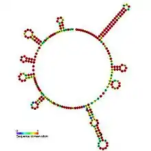 ![]() Predicted secondary structure and sequence conservation of CsrC | |