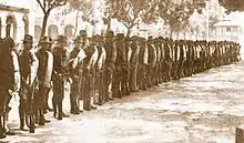 In August 1851, 40 Americans who took part in Narciso López's filibustering expedition in Cuba, including William L. Crittenden, were executed by Spanish authorities in Havana.[24] In 1854, a secret proposal known as the Ostend Manifesto was devised by U.S. diplomats, interested in adding a slave state to the Union. The Manifesto proposed buying Cuba from Spain for $130 million. If Spain were to reject the offer, the Manifesto implied that, in the name of Manifest Destiny, war would be necessary. When the plans became public, because of one author's vocal enthusiasm for the plan,[25] the manifesto caused a scandal, and was rejected, in part because of objections from anti-slavery campaigners.[26]