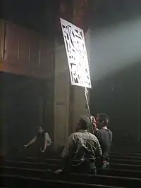 In lighting for film, theatre and still photography, a cucoloris (occasionally also spelled cuculoris, kookaloris, cookaloris or cucalorus) is a device for casting shadows or silhouettes to produce patterned illumination. It is normally referred to as a cookie or sometimes as a kook or a coo-koo. The cucoloris is used to create a more natural look by breaking up the light from a man-made source. It can be used to simulate movement by passing shadows or light coming through a leafy canopy.