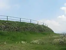 ![]() Western side of the circular pyramid at Cuicuilco. | |