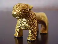 Lions are depicted on vases dating to about 2600 before present that were excavated near Lake Urmia.[16] In Iranian mythology, the lion is a symbol of courage and monarchy. It is portrayed standing beside the kings in artifacts and sitting on the graves of knights. Imperial seals were also decorated with carved lions. The lion and sun motif is based largely on astronomical configurations, and the ancient zodiacal sign of the sun in the house of Leo. Lion and sun is a symbol of royalty in Iranian flag and coins. Goddess Anahita was sometimes shown standing on a lion. Lion is also title of the fourth grade of mithraism.[17]