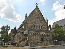 Cummins Memorial Church is an historic Reformed Episcopal Church building located at 1210 West Lanvale Street in Baltimore, Maryland, United States. It is a Gothic Revival-style church executed in granite ashlar. It features a high-pitched gable roof; a short, two-staged tower with a slate-shingled, hexagonal roof; and a large stained glass, lancet window with wood tracery. It was erected in 1878 for the Cummins Memorial Reformed Episcopal Church, a memorial to George David Cummins (1822–1876), and originally named Church of the Rock of Ages.[2] The building is now Emmanuel Christian Community Church.