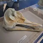 French naturalist and zoologist Georges Cuvier first described the species in Recherches sur les ossements fossiles ("Research on Fossil Bones", 1823)[8] based on a skull found on the Mediterranean coast of France at Fos-sur-mer, Bouches de Rhone. He named it Ziphius cavirostris from the Latin cavus for "hollow" or "concave", referring to the prenarial basin, a deep hollow in the skull which is a diagnostic trait of the species. Baron Cuvier believed the skull represented the remains of an extinct species. Later, in 1850, paleontologist and zoologist Paul Gervais found the skull to be identical with that of a whale carcass more recently stranded on a beach.[9]