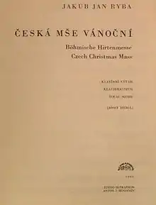 Ryba composed his most famous work in 1796, a year after he managed to resolve a dispute over his teaching methods with the priest Kašpar Zachar.[3] He wrote the music to a Czech libretto of his own devising; It was his only "mass" composed to a Czech text,[4] although several of his earlier pastoral masses included interpolations with Czech text. Ryba did not identify this mass in his list of compositions created from 1782 to 1798, mentioning rather only "seven pastoral masses, one of them in the Czech language".[3] The autograph manuscript was lost; today only the title page is preserved intact. Some parts of the composition were performed separately as pastorales (pastorellas) and the text gradually adapted with changes in the Czech language. Though Ryba created more than 1,000 compositions, his Czech Christmas Mass remains one of the few works by him performed regularly to date.