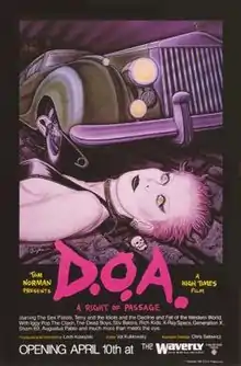 D.O.A.: A Right of Passage is a 1981 rockumentary film directed by Lech Kowalski (his premiere film as a director) about the origin of punk rock. The rockumentary takes interview and concert footage of some of punk rock's earliest bands of the late seventies scene. Features live performances by the Sex Pistols, The Dead Boys, Generation X (with Billy Idol), The Rich Kids, the X-Ray Spex, and Sham 69, with additional music from The Clash, Iggy Pop, and Augustus Pablo.[2][3]