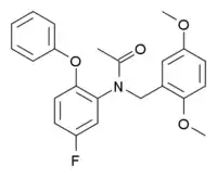 DAA-1106 is a drug which acts as a potent and selective agonist at the peripheral benzodiazepine receptor, also known as the mitochondrial 18 kDa translocator protein or TSPO, but with no affinity at the GABAA receptor. It has anxiolytic effects in animal studies.[1][2][3] DAA-1106 has a sub-nanomolar binding affinity (Ki) of 0.28nM, and has been used extensively in its 3H or 11C radiolabelled form to map TSPO in the body and brain, which has proved especially helpful in monitoring the progress of neurodegenerative diseases such as Alzheimer's disease.[4][5][6][7][8][9]