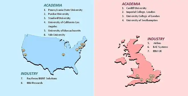 DAIS-ITA consists of several research laboratories and universities in U.S. and UK. These include the U.S. Army Research Laboratories and the UK Defense Science and Technologies as participating Government research laboratories. The non-government members of the alliance in both countries consisted of both industrial and academic research organizations as listed below: