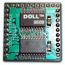 The first DOLL (Digital One Line Link) version was developed as a joint project between Norway, England and Hungary[11][12][13][14][15] by Anne Selene FIKO and her team in the early 1990s and was used in home automation, electronic control- and audio system. The early DOLL system[16][17] was back then based on 18 - bit Pulse-width modulation (PWM) where the communication was 120 Khz and was divided into 10-bit address and 8-bit data word. The signal was sent three times before the electronics of the receiver side (with the right set address code) was able to approve the data transfer and accept the 8 data bits. The reason why the data was sent 3 times was that it should make sure that the receiver did not receive erroneously information in the data network.