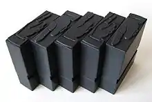 With the help of Danny Flynn of Astonish Me Press, [Flora] McLean created fashion accessories and jewelry inspired by letterpress printing – with a twist! The designs could also be used to print with and came with their own inking pots so the wearer could quite literally print on the go. Rubber embossed belts turned into rollers along with laser cut roller handbags and cuffs bearing laser-cut text. – Print Week, 2010[9]
