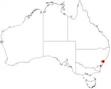 This darwinia grows in forest and scrub near the top of sandstone gullies on the central coast north of Sydney.[2][3][4]