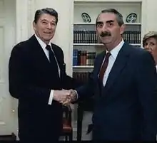 ![]() David Fields (right) with President Ronald Reagan, 1987 | |