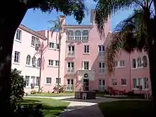 Davis Island was built upon two man-made islands atop two small natural islands formerly known as "Little Grassy Key" and "Big Grassy Key" at the mouth of the Hillsborough River.[2] The islands were built from mud dredged from the bottom of Tampa Bay in the 1920s and expanded. This dredge-and-fill operation was undertaken at the height of the Florida Land Boom by developer and Tampa native D. P. Davis. Davis then purchased all the dredged land for $350,000. He planned a resort community with three hotels, nine-hole golf course, airport, and swimming pool. D.P. Davis then sold 306 of the original lots for $1,683,582. The development stalled when the Florida land boom of the early 1920s wound down, and Davis was mysteriously lost at sea while making a transatlantic voyage in October 1926.[3]