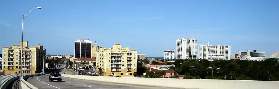 ![]() From top, left to right: Welcome sign when entering Daytona Beach; Daytona Beach Bandshell; Ocean Walk Shoppes; Daytona Beach Pier; Daytona International Speedway | |