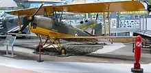 The DH.60T Moth had several shortcomings, and thus was subject to several alterations, such as the adoption of shortened interplane struts in order to raise the wingtips after insufficient ground clearance was discovered while it was undergoing trials at RAF Martlesham Heath.[4] As a result of the Martlesham trials, a favourable report for the type was produced, which in turn led to the type soon being formally adopted as the new basic trainer of the Royal Air Force (RAF). A single prototype, designated the DH.82 Tiger Moth, was ordered by the British Air Ministry under Specification 15/31, which sought a suitable ab-initio training aircraft.[4]