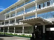 Initially, the De La Salle campus served as a secret shelter for several displaced civilians, wounded soldiers and Filipino guerilla fighters at the beginning of the Japanese occupation. However, later on it was occupied by the Japanese forces, and was made into military defense quarters on January 2, 1942.[16] Several repeated bombings severely damaged the DLSC campus. Despite this, classes continued as the Christian Brothers taught on during the Japanese occupation of Manila. During this time, several of the De La Salle boys along with the Ateneo boys had to set their school rivalry aside and share their classrooms with each other along with several other students from various neighboring schools. Several schools in Manila had discontinued their operations and closed down due to the fall of Manila to the Japanese invading forces. The DLSC high school classes were later on transferred to St. Scholastica's College, Manila in 1943.[37][38]