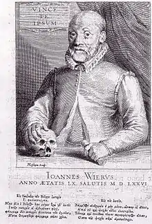 De praestigiis daemonum, translated as On the Tricks of Demons,[1] is a book by medical doctor Johann Weyer, also known as Wier, first published in Basel in 1563.[2][3] The book argues that witchcraft does not exist and that those who claim to practice it are suffering from delusions, which should be treated as mental illnesses, rather than punished as witchcraft.[4] It was influential in the abolishment of witchcraft trials in the Netherlands.