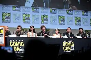 In January 2015, T.J. Miller and Ed Skrein were in talks to appear in the film, with Miller as "an additional comic voice" and Skrein as a villain.[56] A month later, Fox was testing actresses to portray the female lead, including Morena Baccarin, Taylor Schilling, Crystal Reed, Rebecca Rittenhouse, Sarah Greene and Jessica De Gouw.[57] Gina Carano was cast as Angel Dust, and Miller was confirmed for an unspecified role.[16] Baccarin was cast as Deadpool's love interest before the end of February.[9] Colossus actor Daniel Cudmore said he would not be reprising the role for Deadpool,[58] and declined an offer to provide reference for a CG version of the character to be voiced by another actor.[59]