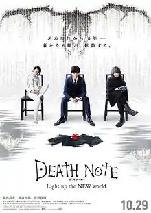 Death Note: Light Up the New World (デスノート Light up the NEW world) is a 2016 Japanese film directed by Shinsuke Sato. The film is based on the manga series Death Note written by Tsugumi Ohba and illustrated by Takeshi Obata and is a sequel to Death Note 2: The Last Name (2006), but features an original story and thematically takes place after the Death Note: New Generation miniseries. It premiered in Japan on October 29, 2016, by Warner Bros.[2][3]