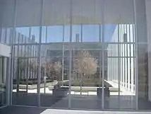 Designed by Moriyama & Teshima Architects in collaboration with the Pritzker Prize–winning architect Fumihiko Maki,[9] the Ottawa Delegation is the first building in the world that will represent the Ismaili Imamat and its institutions.[3] It is configured as an elongated, rectangular ring, surrounding an interior atrium and an exterior courtyard that features a traditional Chahr-bagh Islamic garden.[1][2] The building rests on a solid linear granite podium, and is covered by a glass dome through which light illuminates the atrium and courtyard.[1] The building as a whole is inspired by natural rock-crystal and is an interplay of visual clarity, opacity and translucency. It houses meeting rooms, exhibition areas, a lecture theatre, resource center, and private apartments.[3]