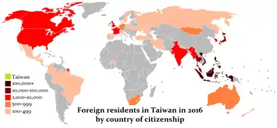 - "Foreign Residents-by Nationality". National Immigration Agency, Ministry of the Interior. 2018-11-28. Retrieved 2018-12-18.