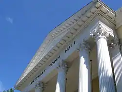 A dentil (from Lat. dens, a tooth[1]) is a small block used as a repeating ornament in the bedmould of a cornice.[2] Dentils are found in ancient Greek and Roman architecture, and also in later styles such as Neoclassical, Federal, Georgian Revival, Greek Revival, Renaissance Revival, Second Empire, and Beaux-Arts architecture.[3]