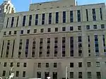 The Theodore Levin United States Courthouse is a ten-story federal courthouse, steel-framed and clad in limestone. The building was constructed in 1932-34, and designed by Branson V. Gambler and Robert O. Derrick. It stands on an entire city block. The building stands on a black granite base, and relief carvings of eagles and other symbols are above the entrance. The upper three stories are set back slightly from the remainder of the building. The interior of the building features fine detailing and plaster stencilwork.[1]