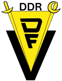 The Deutscher Fecht-Verband (DFV) was the organ of the larger Deutscher Turn- und Sportbund responsible for governing the sport of archery in East Germany. One of the smaller sports associations in the nation, in 1988 the organization had 6,584 registered athletes and 673 trainers. After German reunification in late 1990 the DFV was absorbed by the German Fencing Federation (DFB).[1]