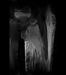 Diabetic myonecrosis is a complication of diabetes. It is caused by infarcted muscle tissue, usually in the thigh.[1]