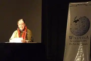 On 26 May 2012, she participated in the WikiGénero "making gender gaps visible on Wikipedia" meeting held at the Ricardo Rojas Cultural Center in Buenos Aires.[11]