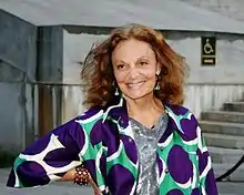 Diane von Fürstenberg (born Diane Simone Michele Halfin; 31 December 1946)[2] is a Belgian fashion designer best known for her wrap dress.[3][4][5][6] She initially rose to prominence when she married into the German princely House of Fürstenberg, as the wife of Prince Egon von Fürstenberg. Following their separation in 1972 and divorce in 1983, she has continued to use his family name.