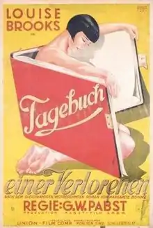 Diary of a Lost Girl (German: Tagebuch einer Verlorenen) is a 1929 silent film directed by G. W. Pabst and starring American silent star Louise Brooks. It is shot in black and white, and various versions of the film range from 79 minutes to 116 minutes in length. This was Brooks' second and last film with Pabst, and like their prior collaboration, Pandora's Box, it is considered to be a classic by many film historians. It is based on the controversial and bestselling 1905 novel of the same name by Margarete Böhme. A previous screen adaptation of the novel, directed in 1918 by Richard Oswald, is currently classified as a lost film.