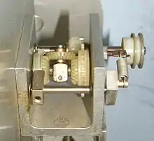 Non-automotive uses of differentials include performing analog arithmetic. Two of the differential's three shafts are made to rotate through angles that represent (are proportional to) two numbers, and the angle of the third shaft's rotation represents the sum or difference of the two input numbers. The earliest known use of a differential gear is in the Antikythera mechanism, circa 80 BCE, which used a differential gear to control a small sphere representing the moon from the difference between the sun and moon position pointers. The ball was painted black and white in hemispheres, and graphically showed the phase of the moon at a particular point in time.[1] An equation clock that used a differential for addition was made in 1720. In the 20th Century, large assemblies of many differentials were used as analog computers, calculating, for example, the direction in which a gun should be aimed. However, the development of electronic digital computers has made these uses of differentials obsolete. Military uses may still exist, for example, for a hypothetical computer designed to survive an electromagnetic pulse. Practically all the differentials that are now made are used in automobiles and similar vehicles including offroad vehicles such as ATVs.