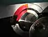 | Interior view of a single-chip DLP projector, showing the light path. Light from the lamp enters a reverse-fisheye, passes through the spinning color wheel, crosses underneath the main lens, reflects off a front-surfaced mirror, and is spread onto the DMD (red arrows). From there, light either enters the lens (yellow) or is reflected off the top cover down into a light-sink (blue arrows) to absorb unneeded light. Top row shows overall components, closeups of 4-segment RGBW color wheel, and light-sink diffuser/reflection plate on top cover. | |||