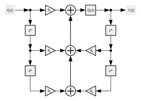 In the direct form 1 arrangement, there is a single quantizing/rounding function