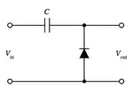 A diode clamp circuit can take a periodic alternating current signal that oscillates between positive and negative values, and vertically displace it such that either the positive or the negative peaks occur at a prescribed level. The clamper does not restrict the peak-to-peak excursion of the signal, it moves the whole signal up or down so as to place the peaks at the reference level.