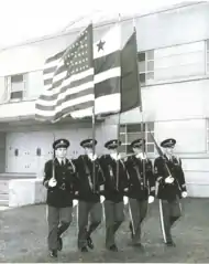 During the 1940s, the DCNG recruited members from various units to participate in performing the Honor Guard protocol. In the picture to the right, five members of the DCARNG, are shown practicing ceremonial flag carry in front of the DCNG armory, located in Washington, DC.