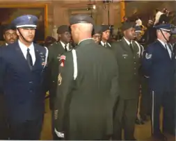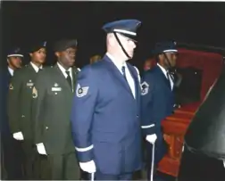 ![]() The DCNG Honor Guardsmen and Airmen were the first to be selected by Congresswoman, Eleanor Holmes Norton, to support the funeral viewing of Rosa Parks (civil rights activist), held October 30-31, 2005, at the US Capitol Rotunda building, in Washington, D.C. | |