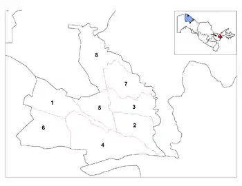 | 9 | Uchtepa | 237,000 | 28.2 | 8,404 | |